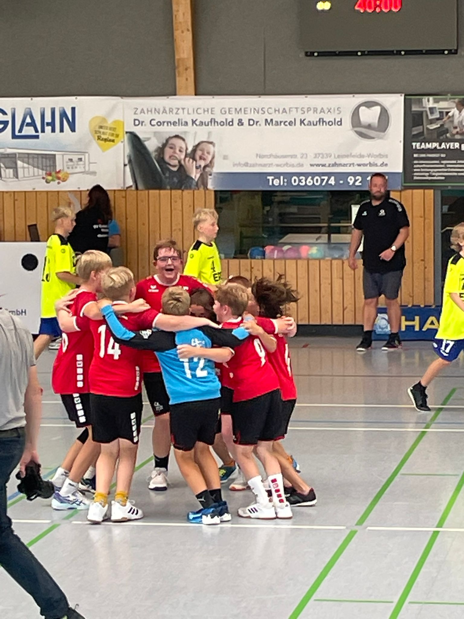 Bereits nach 14 Sekunden erzielte Henry für uns das erste Tor der Saison und nahm uns somit ein gutes Stück Nervosität. Nachdem Henry gleich ein zweites Mal erfolgreich war, fand auch der Gastgeber ins Spiel. Insbesondere über ihren körperlich äußerst starken Mittelmann, der von uns nicht zu bremsen war, wenn er einmal Tempo aufgenommen hatte, hielten die Worbiser dagegen. Da wir aber in fast jedem Angriff den Weg zum Tor fanden und auch sicher abschlossen, konnten wir uns nach und nach absetzen. Beim 6:11 nahm die Heimmannschaft daher erstmals eine Auszeit. Henry mit sieben und Tino mit drei Toren hatten da schon für einen klaren Vorsprung gesorgt. Und wir ließen uns nicht aus dem Konzept bringen, bauten die Führung bis zur Halbzeit sogar auf acht Tore aus.