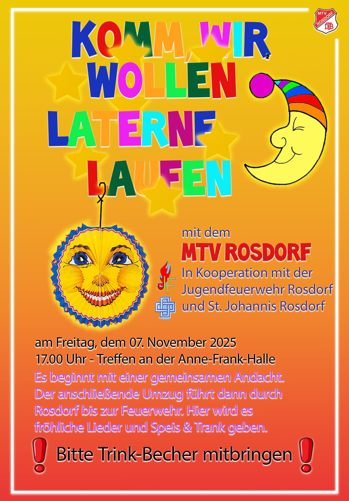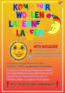 Allgemein Laternenumzug des MTV Rosdorf und der Jugendfeuerwehr Rosdorf am 07.11.2025 17. Oktober 2025 Administrator Alle Jahre wieder … … auf zum Laternenumzug mit Ausklang im Feuerwehrhaus Rosdorf. Euer MTV Rosdorf Vorstand